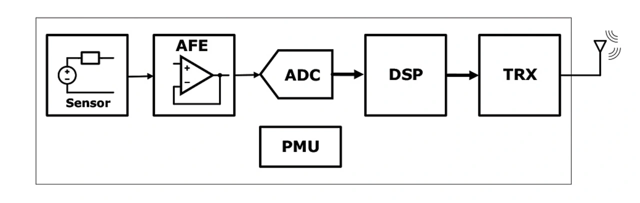 In solchen Fällen besteht die Herausforderung bei einem Wandler darin, eine Architektur mit komprimierter Abtastung (CS) zu entwickeln, die bei der Analog/Digital-Wandlung weniger Daten erzeugt und somit die Leistungsaufnahme des SN senkt. Die komprimierten Informationen werden dann an den Hub übertragen, wo mit wesentlich mehr Rechenkapazität und größerem Leistungsbudget die Rekonstruktion des empfangenen komprimierten Signals in das ursprüngliche erfasste Signal durchgeführt werden kann.