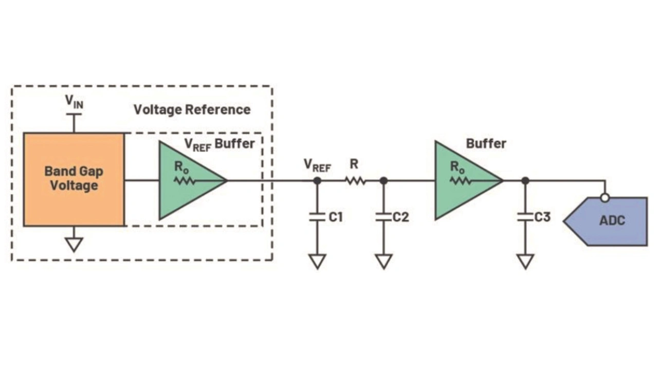 Um eine hohe Messauflösung von 25 Bit oder mehr zu erreichen, benötigen selbst die besten auf dem Markt erhältlichen separaten Spannungsreferenzen mit einer rauscharmen Spezifikation etwas Hilfe, um das Rauschen zu dämpfen. Eine externe Schaltung wie beispielsweise ein Filter kann das Rauschen so weit dämpfen, dass der gewünschte Dynamikbereich des ADCs erreicht wird.