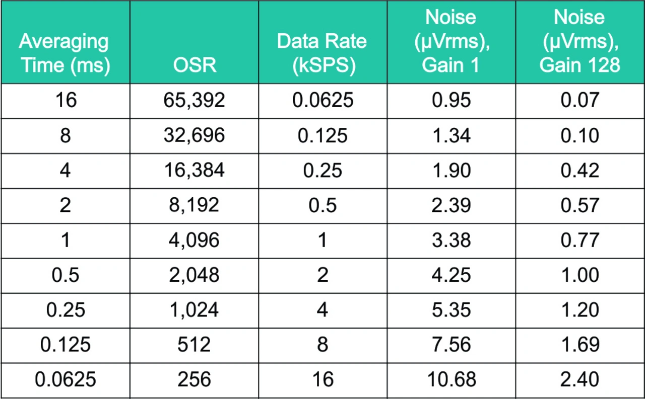 Eine weitere, in Tabelle 2 vorgeschlagene Option ist die Wahl eines höheren Verstärkungsfaktors für den internen PGA (Programmable Gain Amplifier) des ADC, wodurch sich das eingangsbezogene Rauschen verringert. Alternativ kann das Signal durch eine externe Verstärkerstufe aufbereitet werden, jedoch lässt dies die Kosten der Signalkette nicht unerheblich ansteigen.