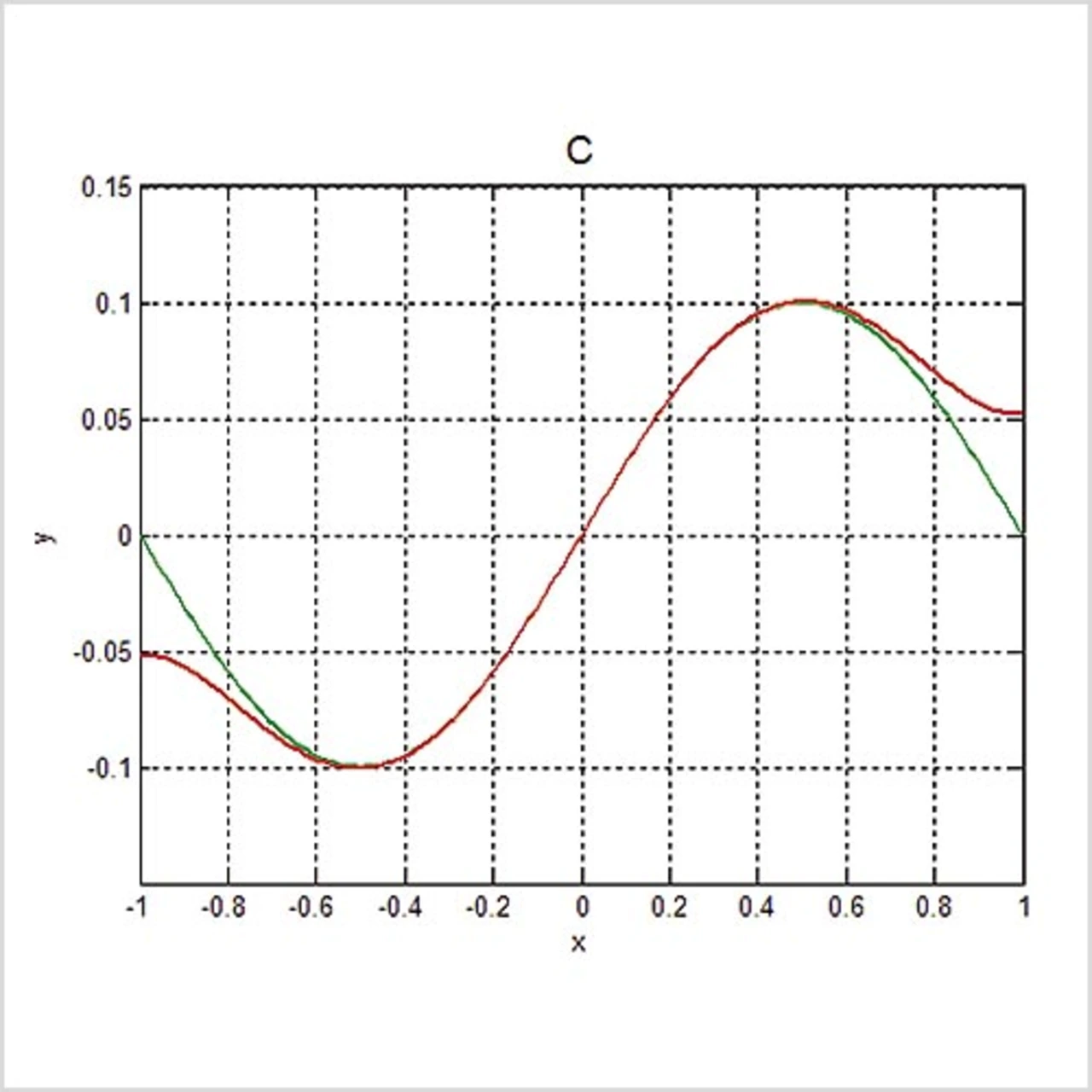 Für die Gegenüberstellungen wurde der Algorithmus für ein konkretes Beispiel auf der ARM7-MCU umgesetzt. Die Koeffizienten für einen Sinus wurden mittels Taylorreihe erzeugt. Die zu lösende Sinusfunktion ist in Gleichung (5) mit k = 0, 1, ..., die zugehörigen Koeffizienten der Taylorreihe sind a0 = 0, a1 = 1/10 · Pi, a2 = 0, a3 = -1/10 · Pi3, a4 = 0, a5 = 1/1200 · Pi5. Das Polynom beschreibt den Sinus im Intervall -0,5 <= x <= 0,5 bei einem maximalen Fehler von 0,23% (Rechenweg im Fließkommaformat) im Bezug auf die doppelte Amplitude, also 2k.