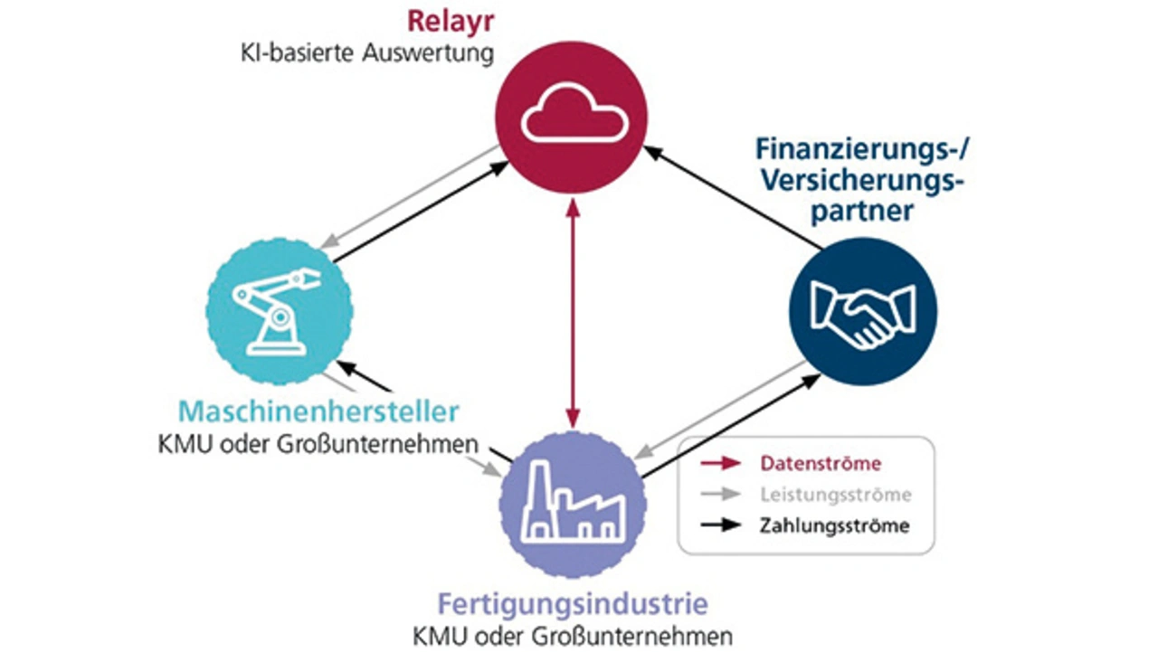 In der hochautomatisierten Fertigungsindustrie erzeugen ungeplant stillstehende Anlagen hohe Produktionsausfälle. Über eine datenbasierte Innovation des Tech-Start-ups Relayr kann die Maschinenfunktion durch integrierte Sensoren und KI-basierte Auswertung überwacht werden (Predictive Maintenance). Untypisches Maschinenverhalten wird frühzeitig erkannt und das Unternehmen kann die Anlage prüfen und gegebenenfalls warten, bevor ein Produktionsausfall auftritt. Das verhindert ungeplanten Stillstand der Anlagen und minimiert die Risiken potenzieller Schäden durch Produktionsausfälle. Als Teil der MunichRe-Gruppe stehen Relayr zudem mehrere mögliche Finanzierungs- und Versicherungsmodelle und -partner zur Verfügung, um ein geeignetes Wertschöpfungsmodell anbieten zu können.