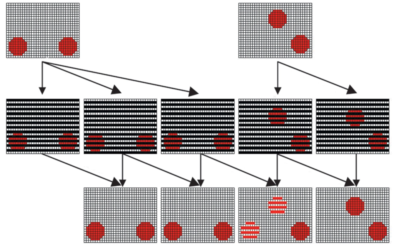 Das einfachste Verfahren der Halbbild/Vollbild-Konvertierung, die Zeilenverdoppelung (Bild 1), liefert wegen der halbierten Vertikalauflösung und des Zeilenflimmerns nur bei Standbildern bzw. auf kleinen Bildschirmen bis etwa 37 cm Diagonale akzeptable Ergebnisse. Die Zeilenverdopplung lässt sich jedoch extrem günstig in Silizium realisieren und ist daher noch sehr verbreitet. Etwas bessere horizontale Auflösung bei geringfügig höheren Kosten liefert die zeilenbasierte Interpolation (Bild 2), die sich bis etwa 55 cm Diagonale einsetzen lässt. Bei größeren Displays sind aufwendigere Verfahren unerlässlich, um normalsichtigen Konsumenten keine Pixelfelder zuzumuten.