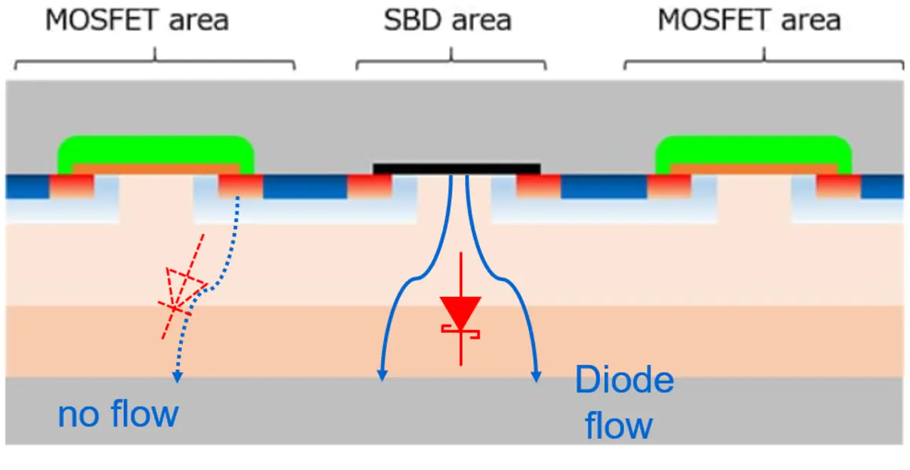 Den Bauteilen der 3. Generation ist gemein, dass sie eine besondere Bauelemente Struktur besitzen. Bei dieser wird eine Schottky-Barrier-Diode (SBD) parallel zu der parasitären PN-Diode angeordnet. Das bringt entscheidende Vorteile: