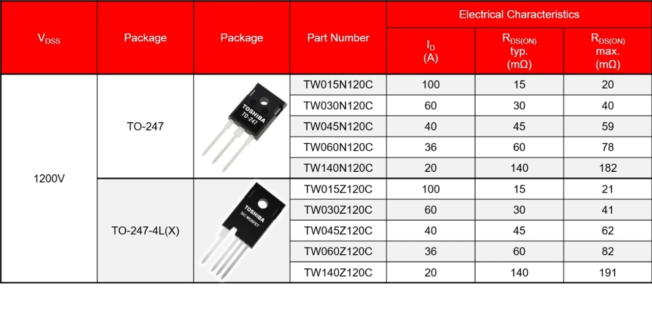 Die Vorteile der TOSHIBA SiC-MOSFETs können Sie mit folgenden Bauteilen selbst erleben: