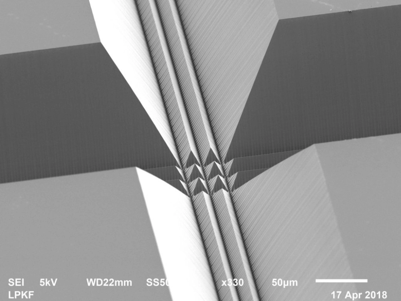 Mit dem von LPKF entwickelten LIDE-Verfahren (Laser Induced Deep Etching) ist es möglich, dünnes Glas schnell, präzise und ohne Beschädigungen wie Mikrorisse oder Oberflächendefekte zu bearbeiten. Damit ist das LIDE-Verfahren eine Grundlagentechnologie für viele Bereiche der Mikrosystemtechnik, beispielsweise für die Fertigung von Mikrochips, Displays, Sensoren und MEMS.