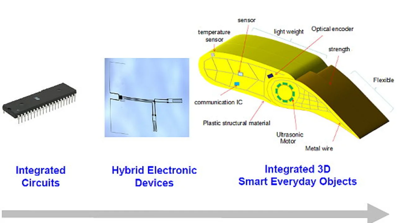 Vielversprechend sind auch gedruckte elektronische Etiketten, die organische oder anorganische Tinten nutzen, um Alltagsobjekte smarter zu machen und sie ins Netz einzubinden. Darüber hinaus erforschen Wissenschaftler das Drucken von hybrider Silizium-Plastik-Elektronik, mit der sich dreidimensionale Objekte drucken lassen.