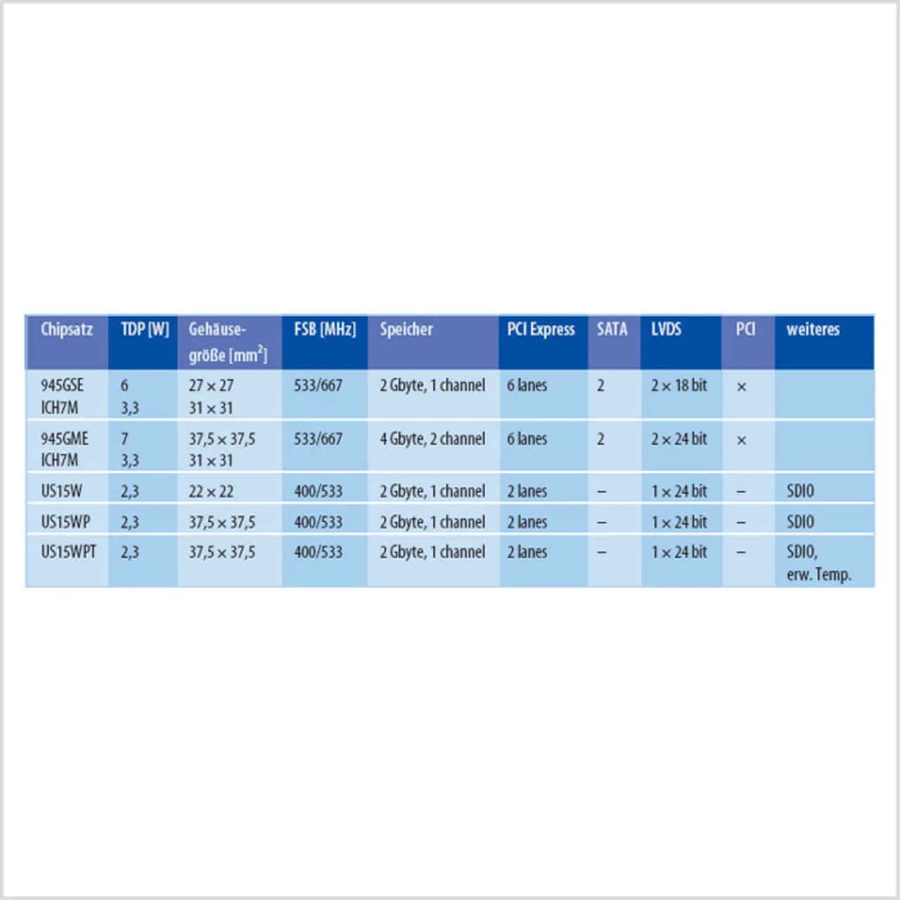 Der Chipsatz als unvermeidlicher Begleiter des Prozessors führt ein Schattendasein und wird oft unterschätzt. Denn im Falle einer Intel-Atom-Plattform beinflusst er die Eigenschaften des Systems stärker als der Prozessor selbst. Ein Blick auf die zwei Alternativen US15W und i945.