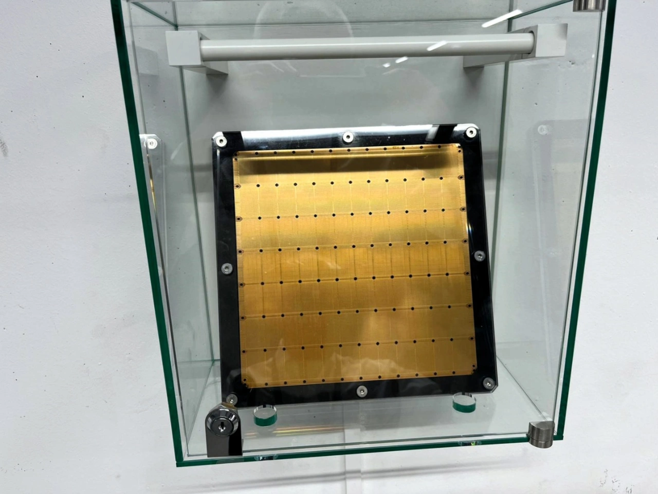 Das zeigt der weitere Rundgang durch das LRZ, der an dem Forschungsbereich des Rechenzentrums vorbeiführt. Hier sind verschiedene Quantencomputer zu sehen, beispielsweise ein Gerät von der in Innsbruck ansässigen AQT, das auf Ionenfallen beruht und deshalb bei weitem nicht so tief abgekühlt werden muss wie die supraleitenden Quantencomputer: Die AQT-Geräte arbeiten bei Raumtemperatur.