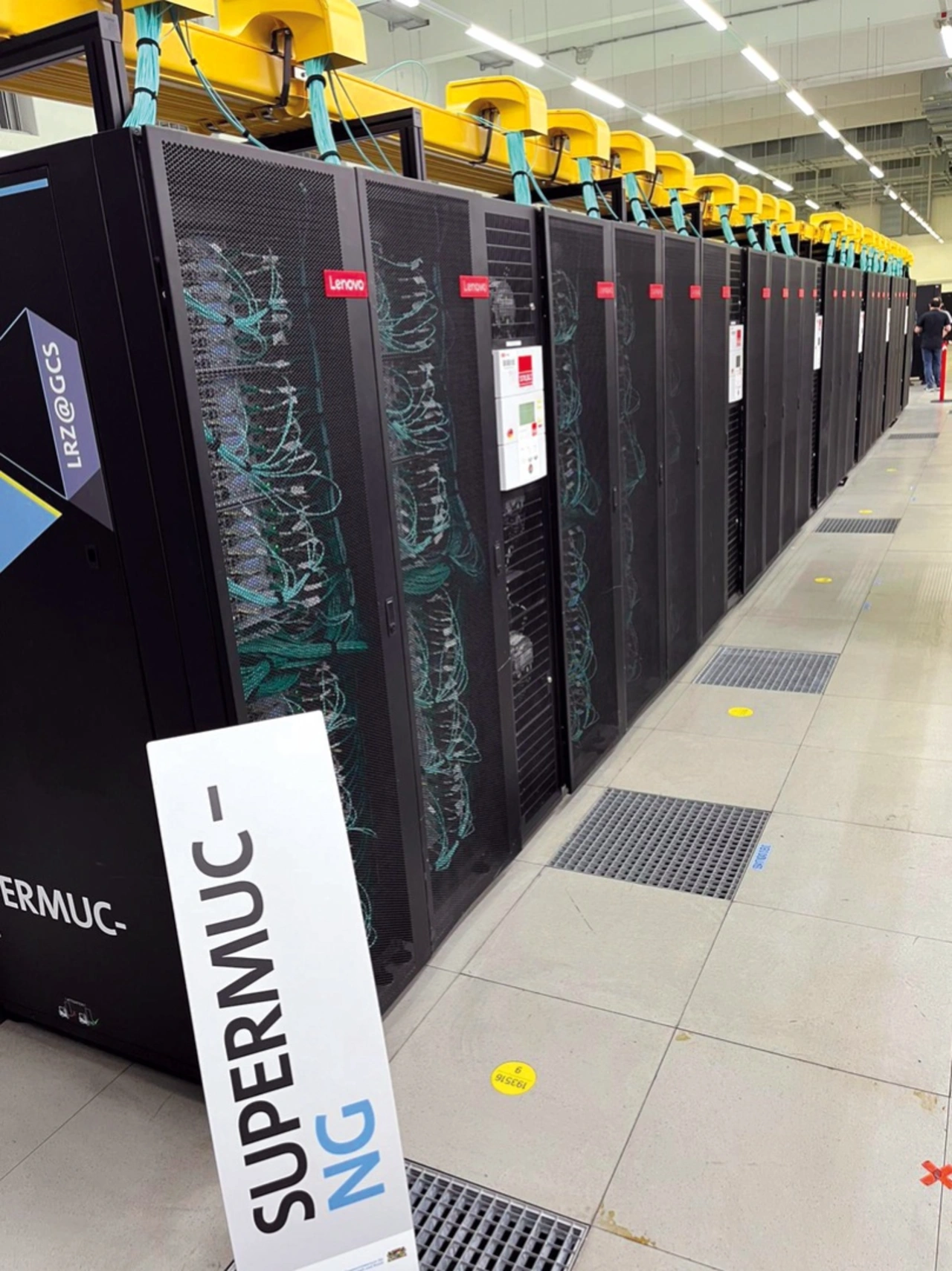 Warum das so ist, zeigt er auf einem Rundgang durch das Innerste des LRZ. Dort steht unter anderem der SuperMUC-NG. Wer bis hierhin vordringen darf, ist nicht nur von dem Anblick der Tausenden in langen Reihen angeordneten Server-Racks mit zig Tausenden von Prozessorkernen überwältigt, sondern auch von dem Lärm, der dort herrscht. »Das sind die Lüfter zur Kühlung der Server«, erläutert Kranzlmüller, gegen den Geräuschpegel ankämpfend. Doch glücklicherweise würden die unruhigen Zeiten bald vorbei sein, denn die viel leisere Wasserkühlung wird die Luftkühlung ablösen – wobei das LRZ auch in dieser Hinsicht weltweiter Pionier ist.