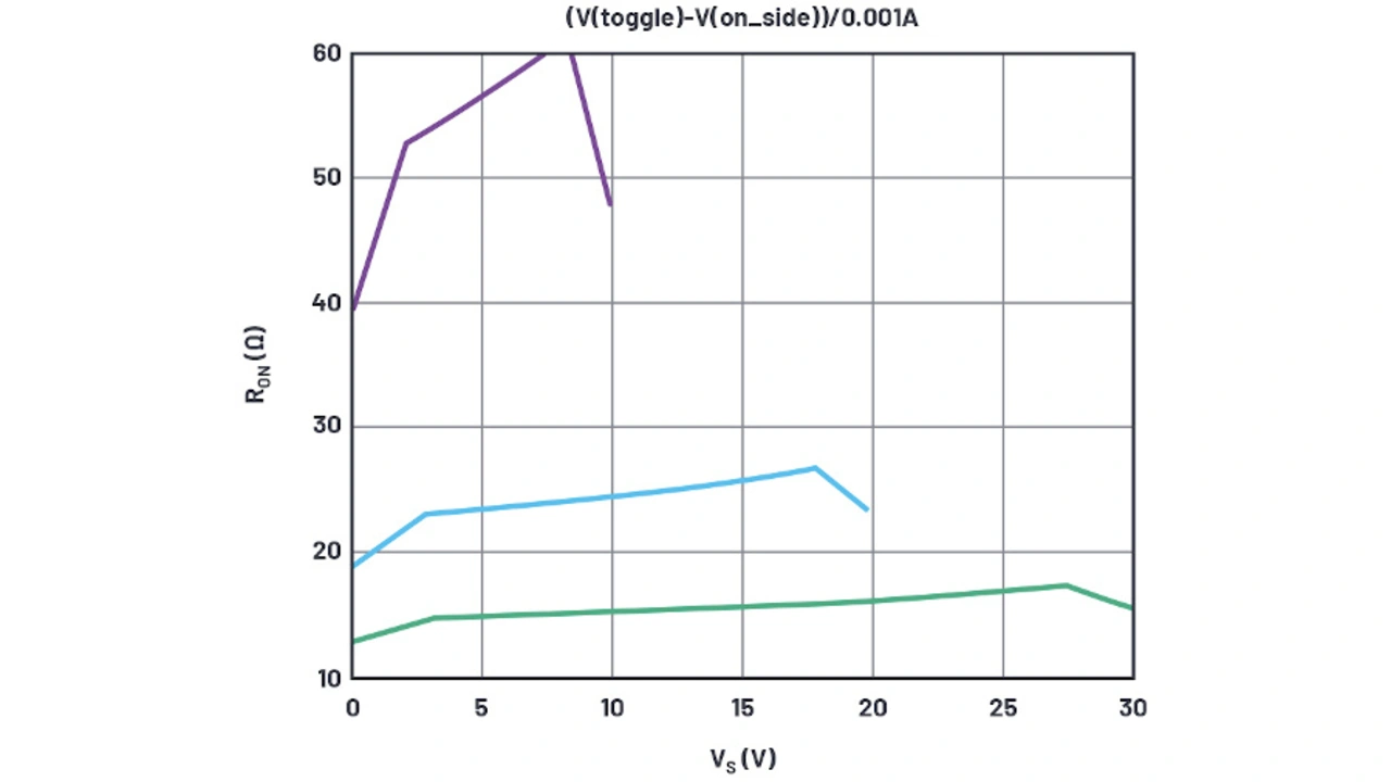 Das Schwierige mit Analogschaltern ist, dass sie so universell einsetzbar sind und ein Arbeitspunkt nicht ausreicht. Beim genauen Betrachten der verschiedenen Analogschalter-Makromodelle von Analog Devices und anderen IC-Herstellern, fällt auf, dass in allen Dateiköpfen angegeben ist, dass keine Versorgungsspannungs- oder Temperaturabhängigkeit modelliert wird. Dafür muss ein eigenes Makromodell erstellt werden. Die vorhandenen Standardmodelle der Halbleiterhersteller sind zwar ein guter Ausgangspunkt, aber um eine sehr leistungsfähige Analogschaltung zu entwerfen, ist möglicherweise ein neuer Modellierungsansatz für die Simulation erforderlich.