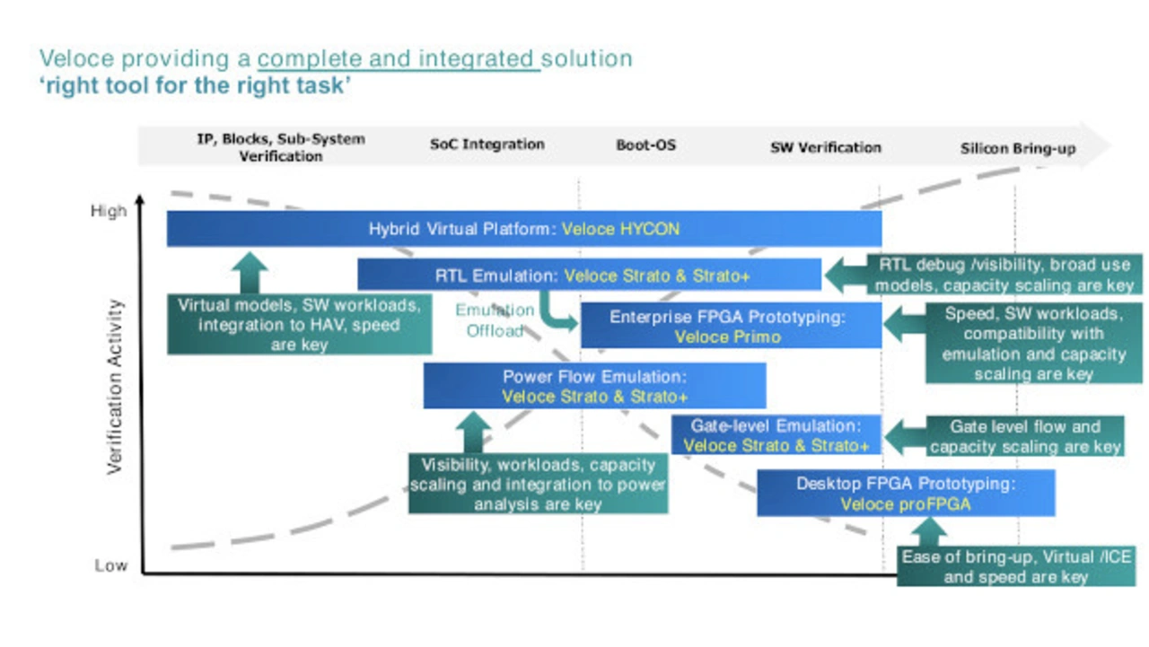 Mit seiner neuen Generation des hardwareunterstützten IC-Verifikationssystems Veloce schafft Siemens Digital Industries erstmals ein integriertes Komplettangebot. Es kombiniert Techniken für virtuelle Plattformen, Hardware-Emulation und FPGA-Prototyping.
