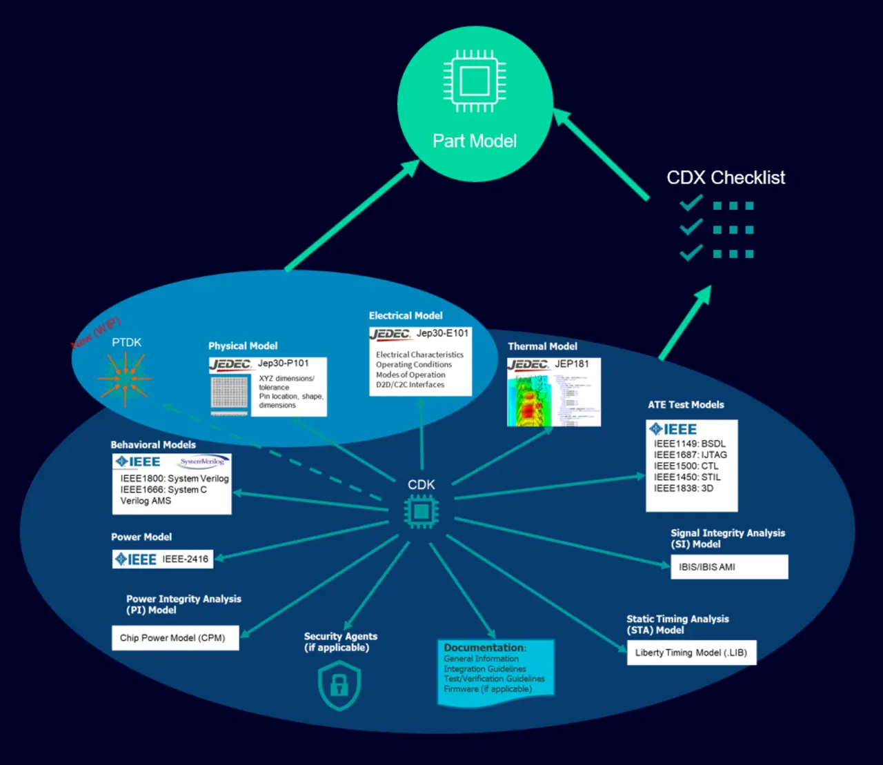 Auf Branchenebene entstehen neue Standards und 3D-IC-Designkits. Diese wurden von der CDX-Arbeitsgruppe und Industriepartnern entwickelt, um die bestehenden Herausforderungen zu bewältigen und eine gemeinsame Sprache zur Beschreibung von 3D-IC-Komponenten, Schnittstellen und Package-Architekturen zu schaffen. Diese Standards sind unerlässlich, um einen zuverlässigen Datenaustausch und eine Integration zwischen verschiedenen Teams und Lieferkettenpartnern zu ermöglichen.