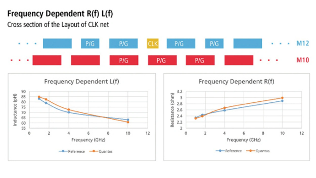 Clock-Netze (CLK) nutzen ein breites Leitungsrouting, um große Chipflächen abzudecken. Dies reduziert die Latenz und verbessert die Performanz. Normalerweise nutzen Hochfrequenzdesigns Routingstrukturen wie H-tree, Mesh oder Fish-bone bei CLK-Netzen. Neue Prozesstechnologien erreichen im Allgemeinen Taktfrequenzen von etwa 2 bis 3 GHz; damit verstärken immer steilere Taktflanken den Einfluss von Induktivitäten (Bild 4).