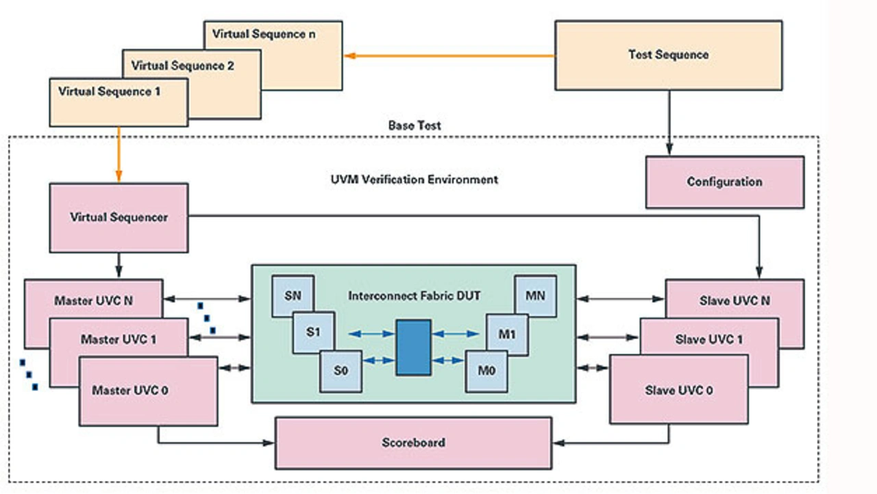 Die Tests beinhalten diverse Sequenzen, die die Funktionen der grundlegenden UVC und Schnittstellen steuern. Die Tests laufen in Übereinstimmung mit dem Testplan, der von den Spezifikationen festgelegt ist, mit den gesteuerten und zufälligen Testfällen. Die funktionellen Abdeckungspunkte werden auch bezüglich des Verifikationsplans kreiert, um sicherzustellen, dass die Spezifikation auch erreicht wird. Danach werden die Simulationen gemacht und eine Abdeckungsdatenbank erstellt, um Code und funktionale Abdeckung zu erfassen. Diese Datenbank wird analysiert und Abdeckungslücken werden überprüft. Danach laufen die Regressionen ab und damit werden Berichte generiert und analysiert. Dieser Prozess wird solange wiederholt, bis die gewünschten Abdeckungsziele erreicht sind, um eine Verifikation hoher Qualität sicherzustellen.