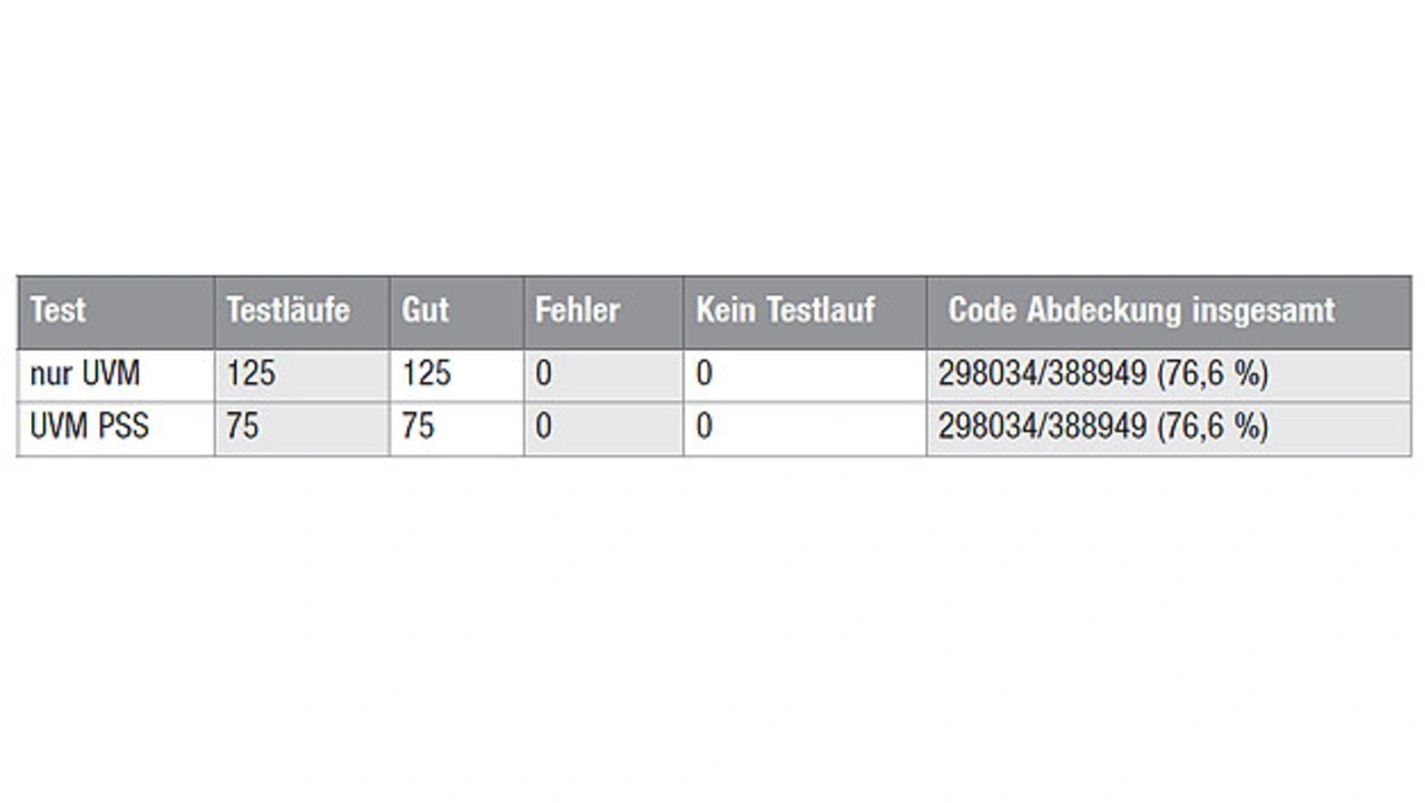 Tabelle 2 zeigt die Ergebnisse des Regressionslaufs mit PSS- und UVM-basierten Verifikationsumgebungen. Die Anzahl der eingeschränkten Zufallstests, die durchgeführt werden müssen, um die maximal mögliche Testabdeckung (mit Waivers) zu erzielen, wird mit der Anwendung einer UVM-PSS-basierten Methode signifikant reduziert. Der Zufallsmechanismus in der PSS-basierten Verifikation beginnt mit der abstrakten Beschreibung der gültigen Übergänge zwischen den Zuständen auf oberer Ebene des Prüflings. Er spezifiziert automatisch den minimalen Satz an Tests, die nötig sind, um die Pfade durch diesen Zustandsraum abzudecken. Die Graph-basierte Testabdeckung erlaubt es dem Anwender die Traversenpfade zu betrachten und Tests zu generieren, sodass die maximale Länge des Graphen abgedeckt ist.