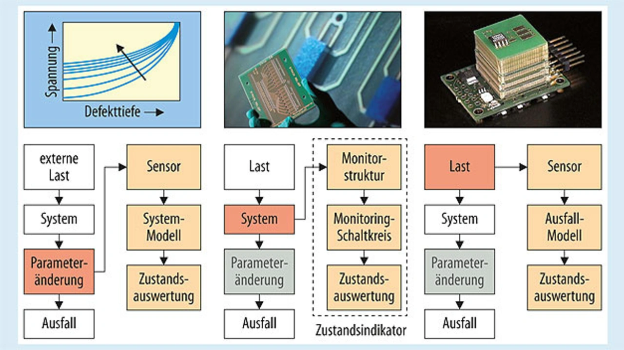 Ein System erfährt eine externe Last. Diese bewirkt die Änderung eines oder mehrerer Systemparameter. Die Reaktion der Systemparameter auf die jeweilige Belastung wird durch einen Sensor überwacht, während gleichzeitig ein Abgleich mit hinterlegten Sollparametern erfolgt. Die so ermittelte Abweichung der Systemparameter dient als Basis für die Bestimmung des aktuellen Systemzustandes. Bei ausreichender Kenntnis über das Verhalten bestimmter Systemparameter während der gesamten Lebensdauer, bis hin zum Versagen der Komponente, ist somit eine zuverlässige Vorhersage eines drohenden Systemausfalls möglich.