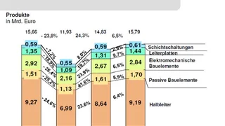 Als Folge der Wirtschaftskrise im vergangenen Jahr wurden weltweit Produktionskapazitäten abgebaut. Die in der Zwischenzeit unerwartet stark gestiegene Nachfrage nach elektronischen Bauelementen führte an manchen Stellen zu Lieferengpässen. Die Verknappung an Basismaterialien – wie z.B. von Edelmetallen – und steigende Preise für die Energieversorgung belasten die Branche zusätzlich. Für 2011 rechnet der ZVEI mit einem Marktwachstum im einstelligen Prozentbereich. Die im Vergleich zu 2010 geringere Wachstumsrate ist im Wesentlichen auf die verlangsamte Entwicklung der Weltwirtschaft und die Tatsache zurückzuführen, dass dann der Wiederaufbau der Vorratsbestände abgeschlossen sein dürfte.