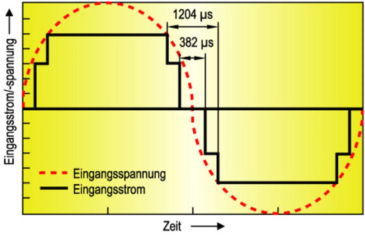 Bild 5. Signalform von Eingangsstrom und -spannung bei der Leistungsfaktor-Korrektur.