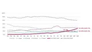 Falls China das starke Wachstum von durchschnittlich 30 Prozent pro Jahr durchhalten kann und die durchschnittlichen Wachstumsraten der übrigen Regionen konstant bleiben, wird China über die nächsten drei Jahre auf einen Weltmarktanteil von mindestens 17,4 Prozent kommen, was im Jahr 2024 einem Umsatz von 116 Mrd. Dollar entsprechen würde. Damit käme China auf Platz 3 hinter den USA und Südkorea.