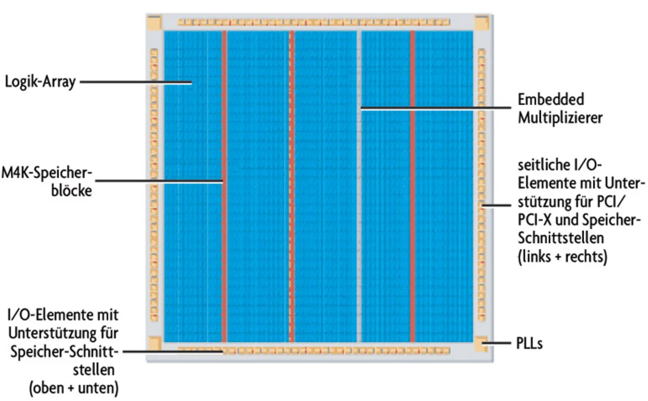 Die erste Generation der Cyclone-„Low-Cost“-FPGAs war bereits eine kostengünstige Alternative zu ASICs und ASSPs geringer Logikdichte, mit Vorteilen bezüglich Flexibilität und verkürzter Markteinführungszeit. Kombiniert mit der ersten Generation des Softcore-Prozessors Nios, konnte man mit den Cyclone-Bausteinen eine kosteneffektive System-on-a-programmable-Chip-Lösung (SOPC) realisieren. Die Kombination aus Cyclone-II-FPGAs (Bild 1) und Nios-II-Prozessor (Bild 2) hebt diese Lösung nun auf eine neue Ebene. Entwickler können die Vorteile der Flexibilität, kurzen Markteinführungszeiten und geringen Kosten der programmierbaren Logik nun in noch mehr Applikationen nutzen, die bislang eine Domäne der ASICs und ASSPs waren. Ein Design mit der Kombination aus Nios II und Cyclone II kann z.B. ein komplettes Embedded-Prozessorsystem mit einer Leistung von mehr als 100 DMIPS (Dhrystone MIPS) für Logik-Kosten von nur 0,35 Dollar implementieren.