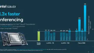Das Inferenzieren bei Llama- (7 und 70 Mrd. Parameter) und Falcon-Modellen (180 Mrd. Parameter) läuft mit den Gaudi 3 Beschleunigern im Vergleich zu einem Nvidia H200 um 30 Prozent schneller ab.