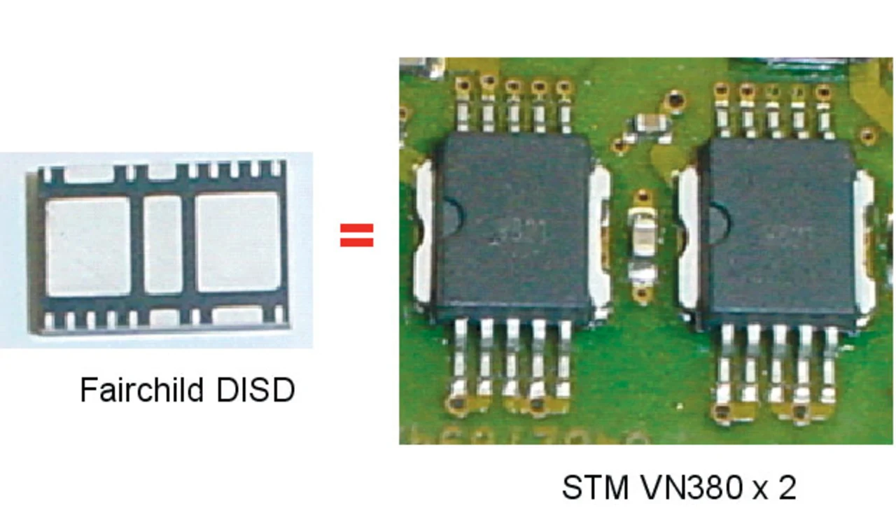 Durch die Verwendung eines PQFN-Gehäuses wird der Platzbedarf reduziert, da keine Anschlüsse über den Gehäusekörper hinausragen. Bild 4 zeigt die Abmessungen von zwei Zünd-IGBTs. Beide IGBTs beinhalten einen gleich großen Chip. Das PQFN-Gehäuse (links) jedoch ist wesentlich kompakter als das TO252 (DPak; rechts). Besondere Bedeutung gewinnt dieser Aspekt, wenn man bedenkt, dass neue Zündsysteme für Autos so konzipiert werden, dass der Leistungsschalter mit der Spule eine Einheit bildet. Für einen solchen Schaltkreis, der in der stiftförmigen, auf der Zündkerze sitzenden Spule sitzt, stellt die Montagefläche einen wichtigen Faktor dar.