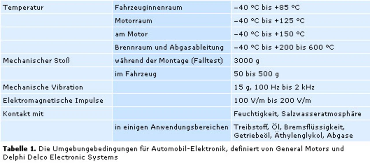 ΔT ist der Temperaturunterschied in °C zwischen der Sperrschichttemperatur und einer Bezugstemperatur an einer als ideal angenommenen Wärmeabführung. Im Falle des Automobils ist diese Bezugsgröße die Temperatur der einströmenden Luft. Die für Fahrzeuge klassische Bezugstemperatur ist 50 °C (122 °F) [Phoenix, AZ]. Aber diese Luft dient zur Kühlung des Motors über das Kühlsystem. Im Allgemeinen sehen Elektronikmodule im Motorraum daher eine wesentlich höhere Bezugstemperatur. Nimmt man Leistungshalbleiter in modernen Schaltungen für den Antriebsstrang (Powertrain), so liegt hier die Bezugstemperatur bei 105 °C, nämlich bei der Temperatur, mit dem Luft über den Kühlkörper des Moduls strömt. Die Tabellen 1 und 2 zeigen einige typische Bedingungen in der Automobiltechnik. Die Platinentemperatur erreicht manchmal bis zu 135 °C.
