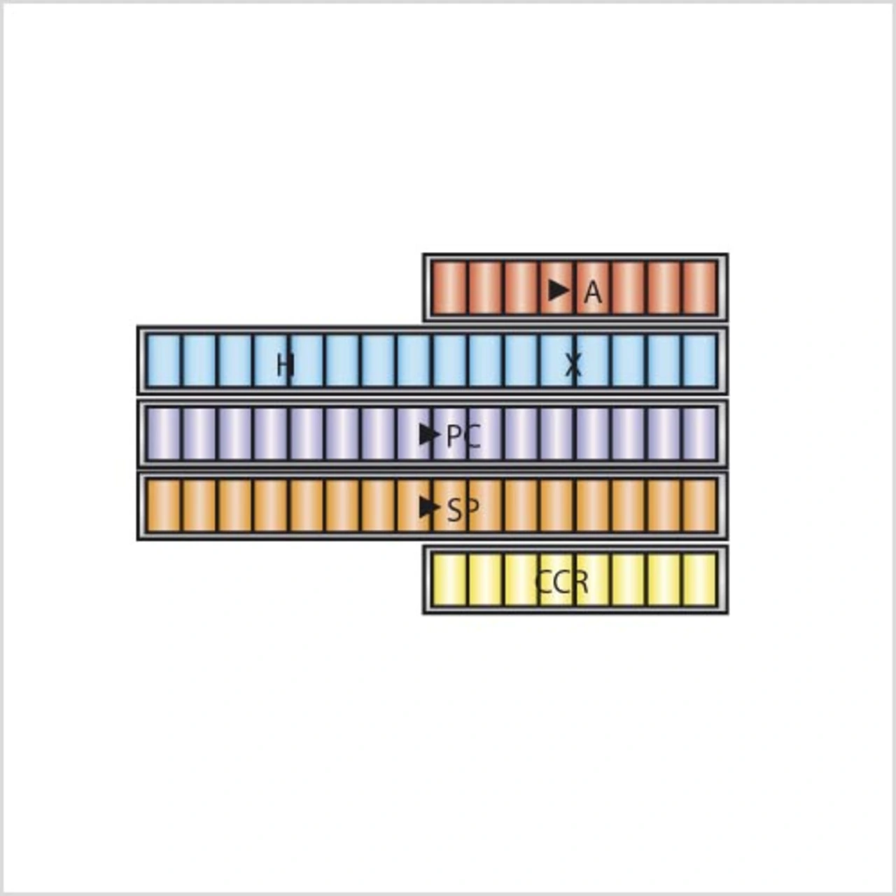 Der S08 weist als preisgünstige MCU am unteren Ende der Leistungsskala nur einen sehr kleinen CPU-Registersatz auf. Er verfügt lediglich über einen 8-bit-Akkumulator, ein aus zwei 8-bit-Registern (H und X) bestehendes 16-bit-Indexregister, einen 16-bit-Programmzähler, der einen zusammenhängenden Adressraum von bis zu 64 Kbyte abdeckt, einen 16-bit-Stackpointer sowie ein 8 bit breites Condition-Code-Register, von dem allerdings nur 6 bit benötigt werden.