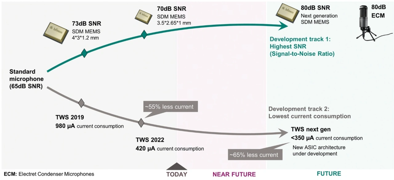 Seitdem hat sich viel getan: Die Hersteller – neben Infineon gehören Firmen wie Knowles, TDK, STM und Goertek dazu – haben die Mikrofone stetig verbessert, und für fast jede Anwendung hat sich ein eigener Mikrofontyp entwickelt, der speziell darauf zugeschnitten ist.
