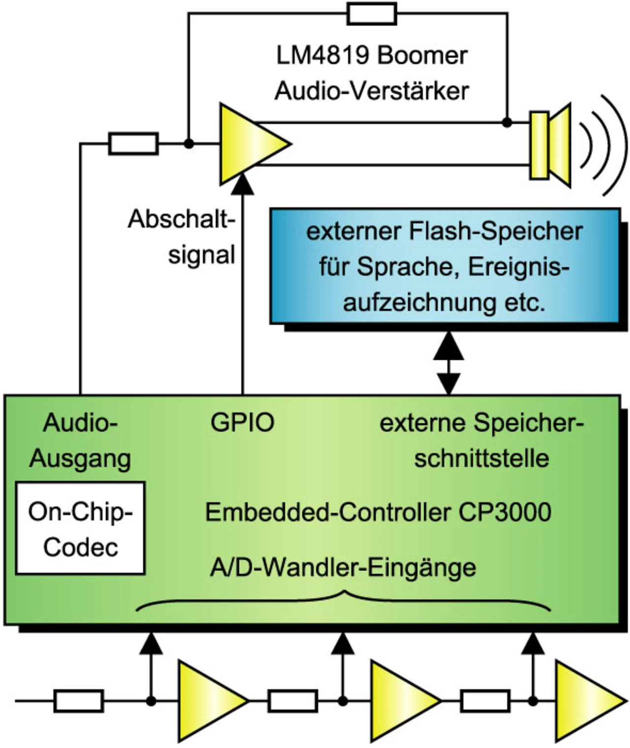 Bild 4 zeigt eine Applikation, bei der der digitale Controller die Funktionstüchtigkeit einer Analogschaltung passiv überwacht. Im Falle einer Störung kann er einen Alarm auslösen, einen Eintrag im Ereignislogbuch des Flash-Speichers zur nachträglichen Analyse durchführen oder eine beliebige andere Aktion auslösen.