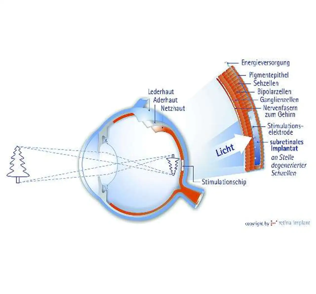 Das netzhautschonende so genannte transchoroidale Operationsverfahren zur Platzierung des Chips in der Nähe des Sehnervs wurde an der Universität Tübingen entwickelt.