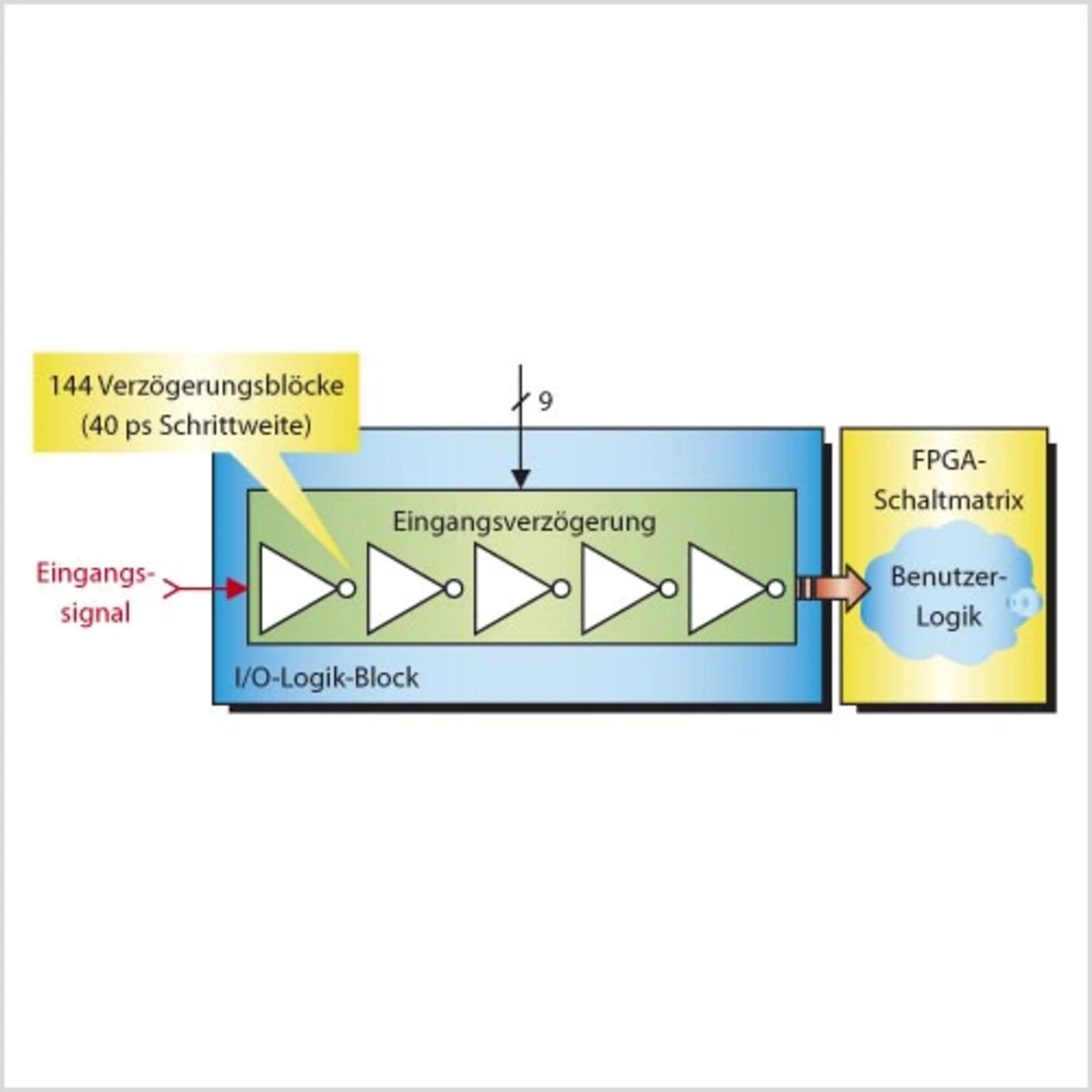 Eine bessere Lösung wäre hier die Verwendung einer Schaltung mit Rückführung, um die Verzögerungselemente dynamisch je nach Anforderung nachziehen zu können. Das Ergebnis ist eine sichere Schnittstelle bezüglich Temperatur- und Spannungsschwankungen.