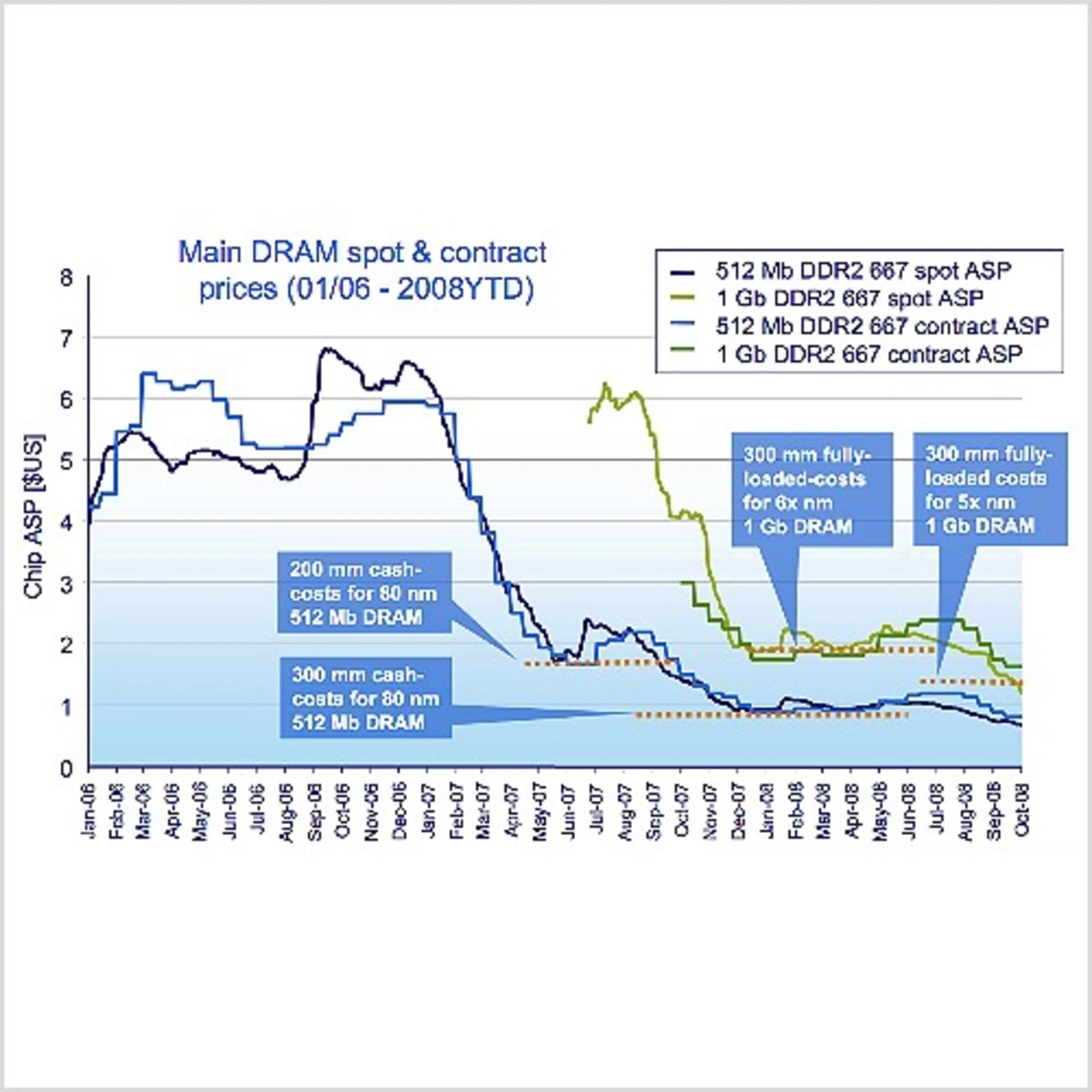 Auch künftig wird die Menge der produzierten Speicher-Bytes weiter kräftig steigen. Das gilt sowohl für DRAMs als auch für NAND-Speicher. In Form von NAND-Speichern liefern die Hersteller in diesem Jahr unter 10 Billionen MByte, diese Zahl soll bis 2012 auf 80 Billionen MByte steigen. Allein die NAND-Speicher, die 2015 für den Einsatz in Mobiltelefonen und PCs – wo sie mehr und mehr die Festplatte ersetzen – gefertigt werden, lassen sich in einen Markt für Lithografiegeräte in Höhe von 1 bis 2 Mrd. Dollar übersetzen. Der Gesamtmarkt dürfte dann zwischen 8 und 13 Mrd. Dollar liegen.