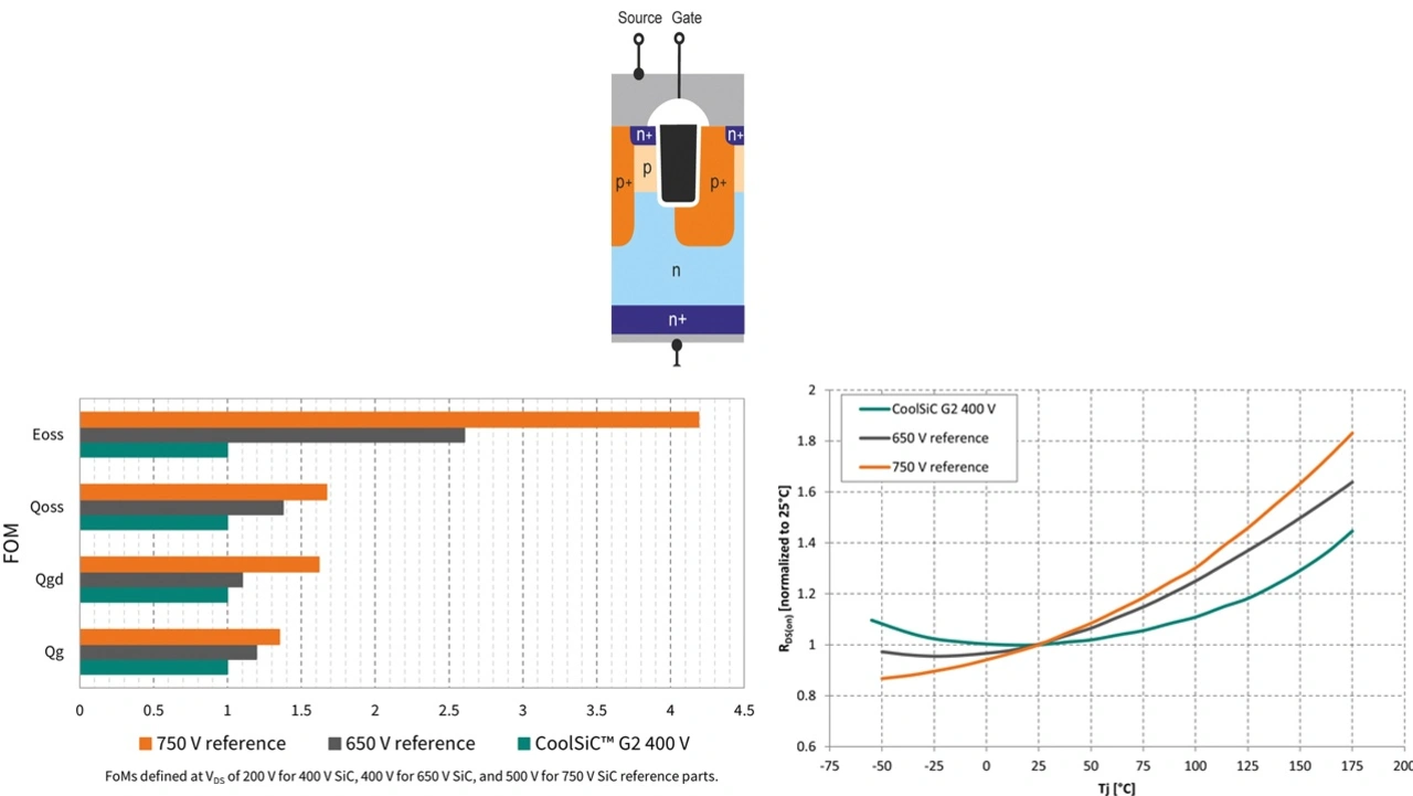 Aufbauend auf dem Erfolg der CoolSiC-Bauteile der ersten Generation schöpft der neue 400-V-SiC-MOSFET die Vorteile der kontinuierlichen technologischen Weiterentwicklung aus, um eine noch bessere Leistung zu erzielen. Indem der Zellenabstand verkleinert und die Kanaleigenschaften verfeinert wurden, konnte die Leistungsfähigkeit der Bauteile deutlich verbessert werden. Zusätzlich ermöglicht eine verbesserte Kontrolle über die Eigenschaften des Driftbereichs eine präzisere Steuerung des Bauteilverhaltens. Durch Optimierungen des Chipdesigns, zum Beispiel des Sperrschichtabschlusses, konnte der Verlust im aktiven Bereich minimiert werden. Als Resultat dieser Bemühungen präsentiert sich ein 400-V-SiC-MOSFET der nächsten Generation, der einen neuen Standard für Leistung, Zuverlässigkeit und Effizienz setzt und die Entwicklung innovativer und nachhaltiger leistungselektronischer Systeme ermöglicht.