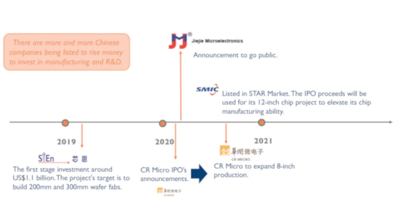 Dies ist jedoch nicht das Ende des chinesischen Strebens in Richtung 300-mm-Fertigung. SiEn baut eine solche Waferfab, ebenso wie CR Micro und Nexperia (ein Tochterunternehmen von Wingtech). CRMicro hat durch einen Börsengang vor kurzem Geld eingeworben und seine 200-mm-Produktionslinie bereits erweitert. Andere Unternehmen wie Jiejie Microelectronics und SMIC folgen demselben Muster (Bild 4). Sie alle wollen das beschaffte Geld in Produktionskapazitäten investieren.