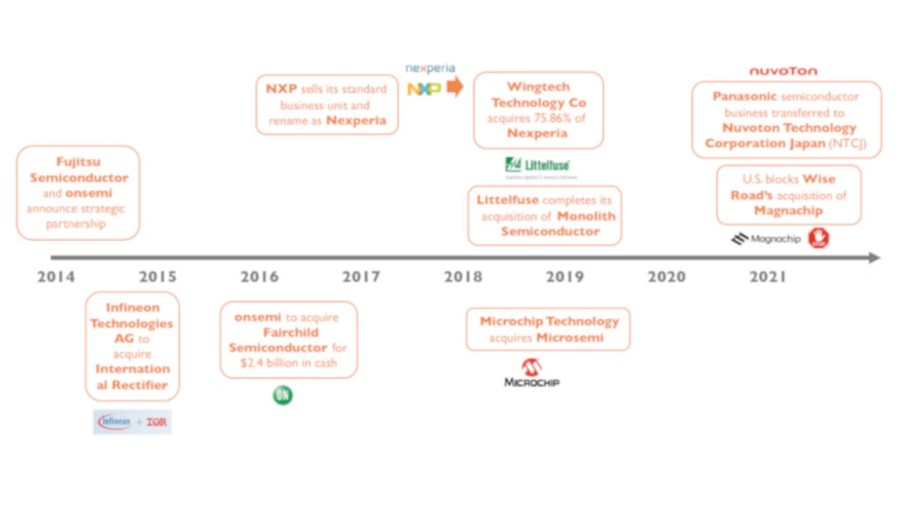 Auch durch Übernahmen gewinnen chinesische Unternehmen Marktanteile (Bild 5). Seit dem Beginn des Handelskriegs zwischen China und den USA sind Übernahmen durch chinesische Unternehmen nicht unproblematisch. Beispiele hierfür sind die Übernahmen der britischen Newport Wafer Fab durch Nexperia oder die südkoreanische Magnachip durch chinesische Investmentgesellschaft Wise Road Capital.