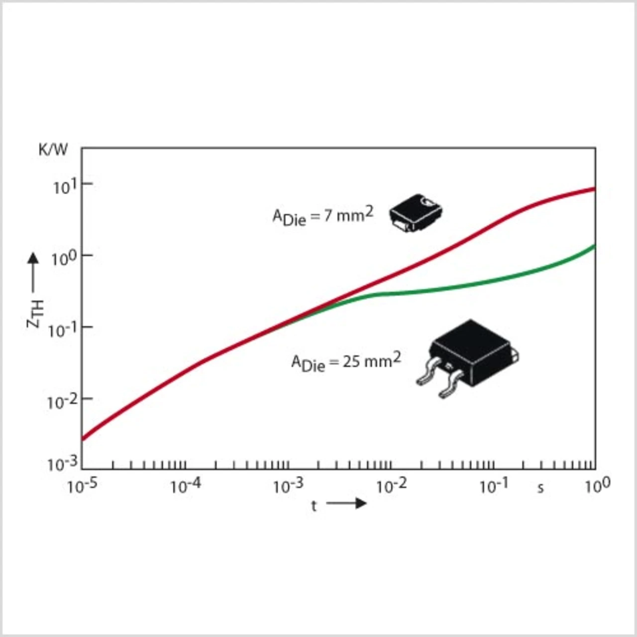 Aus Bild 5 geht hervor, dass es eine interessante Alternative gibt. Der Vergleich der transienten thermischen Widerstände zeigt, dass eine kleine SMC-Löschdiode die gleiche Pulsbelastbarkeit hat wie ein großer D2Pack-Power-FET. Eine solche Diode parallel zum Power-FET könnte energiereiche Rückschlagpulse aufnehmen: Ohne dass die Vorteile der Schaltung verlorengingen, vereinfachte sich die Transistorauswahl erheblich. Sogar die Chipgeometrien würden keine Rolle mehr spielen. Das heißt: Ohne ihre Robustheit zu beeinträchtigen, könnte der Kostenaufwand für die Schaltung reduziert werden. fr
