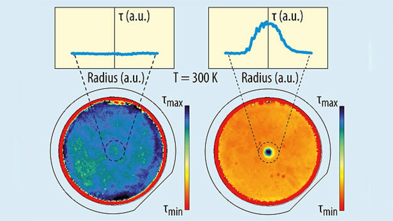Der Freiwerdeschutz ist die neueste Ergänzung der integrierten Schutzfunktionen. Normalerweise führt eine Spannungsspitze innerhalb der Freiwerdezeit zur Zerstörung des Thyristors, der aufgrund der noch im Thyristor vorhandenen Ladung unkontrolliert innerhalb der Kathodenfläche einschaltet. Der integrierte Freiwerdeschutz verhindert das durch zwei Maßnahmen: Zum einen ist die Ladungsträgerlebensdauer im Gate-Bereich deutlich höher als im Rest des Thyristors (Bild 4), zum anderen sorgt ein zusätzlicher Lichtpuls während der Freiwerdezeit dafür, dass sich eine hohe Zahl von Ladungsträgern im Gate-Bereich befinden (Bild 5).