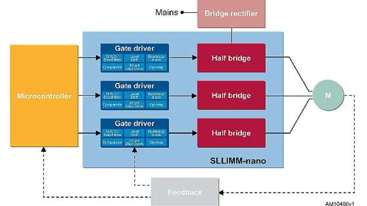 STMicroelectronics verfolgt bei dieser Funktion in ihrem »STGIPN3H60« einen anderen Ansatz. Bei ihrem »Smart Shut-down«-Feature übernimmt ein interner Fehlerkomparator die Überwachung für Überstrom, Kurzschluss und Übertemperatur. Wenn ein Fehler auftritt, wird die Komponente abgeschaltet und ein Fehlersignal zum Controller gesendet. Dies bewirkt eine unverzügliche Abschaltung, ohne die Verzögerung durch das Cycling im Prozessorkern des Controllers.