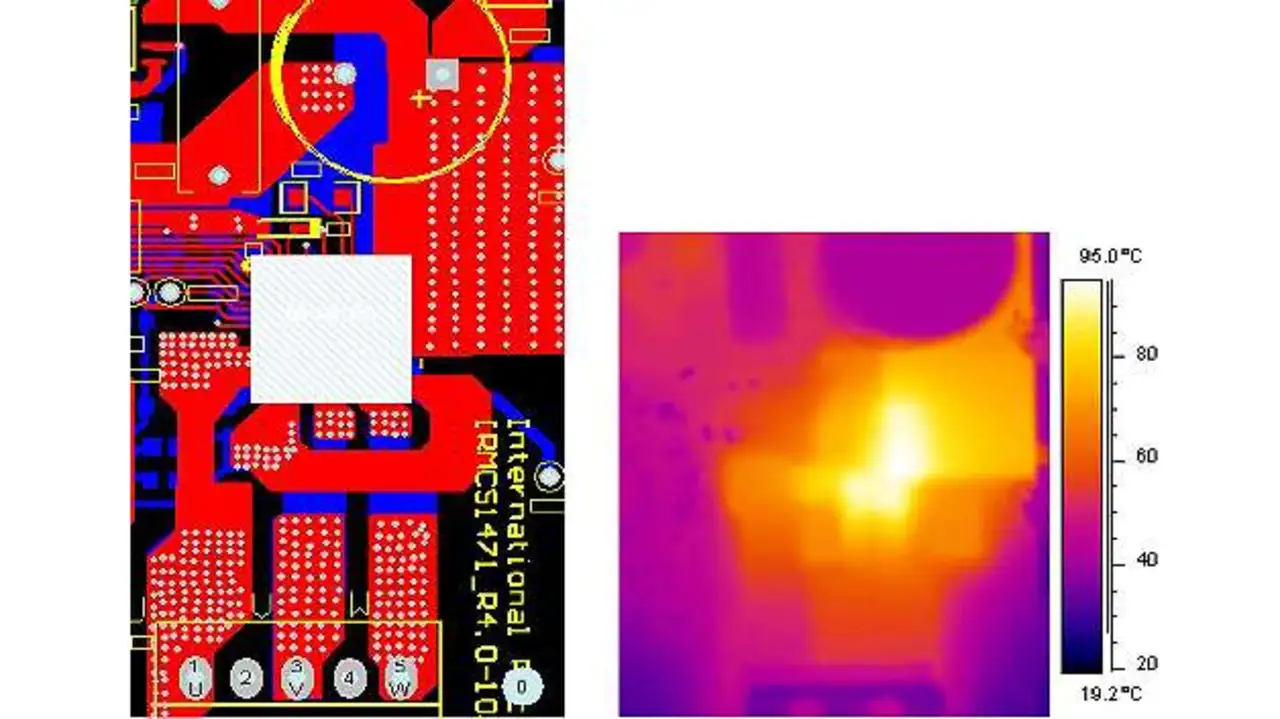 Die Module unterscheiden sich außerdem sehr deutlich in ihrer Größe auf der Systemebene. Die µIPM-Komponenten von IR werden in einem PQFN-Gehäuse geliefert, das nur 12 mm x 12 mm groß ist. Dies ist bereits recht klein, stellt jedoch noch nicht die größte Platz-ersparnis dar. Tatsächlich bietet die Bauform QFN eine sehr gute thermische Leistung, und daher können die µIPM-Module Motoren bis etwa 100 W ohne externen Kühlkörper versorgen (Bild 3); gleiches gilt laut STMicroelectronics für die SLLIMM-nano-Module. In kompakten Pumpen ist der Wegfall dieses sperrigen Teils ein erheblicher Vorteil gegenüber Bauformen, bei denen oben auf dem Modul ein Kühlkörper angebracht werden muss.
