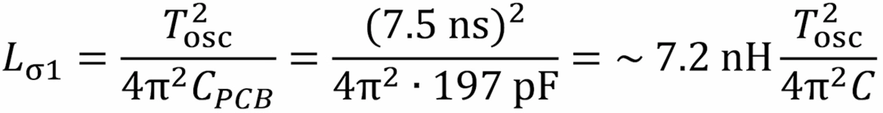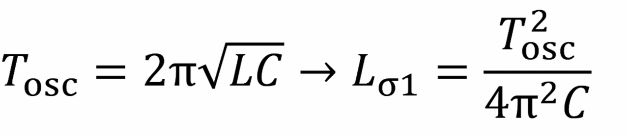 Nach dem Abschalten des MOSFET zeigen die Vds-Wellenformen gedämpfte Schwingungen aufgrund von Wechselwirkungen zwischen der parasitären Induktivität und Kapazität der Schalt. Die parasitären kapazitiven Schwingungen, gekoppelt mit der Streuinduktivität, werden durch Widerstandskomponenten in ihrer Stärke gedämpft. Ein solches Szenario kann als Serienresonanznetzwerk (R, Lσ und C) modelliert werden, wobei die Schwingungsdauer (Tosc) wie folgt ausgedrückt wird: