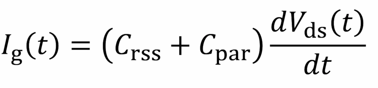 Große Kopplungskapazitäten zwischen schnell schaltenden Knoten (mit hohem du/dt und di/dt) und der Gate-Treiberschaltung führen zu erhöhten Verschiebungsströmen am Gate-Knoten. Dieser Effekt wird durch folgende Gleichung beschrieben: