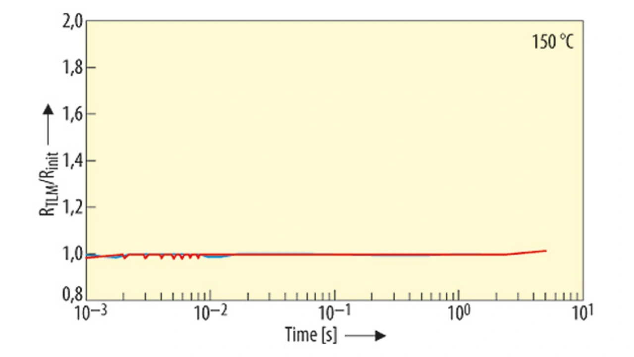 EpiGaNs neueste Generation seiner hochspannungsfesten Puffertechnologie erfüllt alle drei genannten Anforderungen. Die für 650 V spezifizierten Epiwafer weisen eine Durchbiegung von weniger als 50 µm auf. Auch haben sie vernachlässigbare vertikale Leckströme: weniger als 1 µA/mm2 bis herauf zu 650 V. Und in beiden Polaritäten ermöglicht der letztere Aspekt neuartige Schalt-Topologien wie integrierte Halbbrücken. Außerdem hat EpiGaN kürzlich gezeigt, dass sogar bei 150 °C und Betrieb mit 600 V keine Änderungen des Transistorwiderstands gegenüber dem stationären Zustand auftreten. Damit ist der dynamische RDS(on)-Effekt vollständig eliminiert (Bild 4).