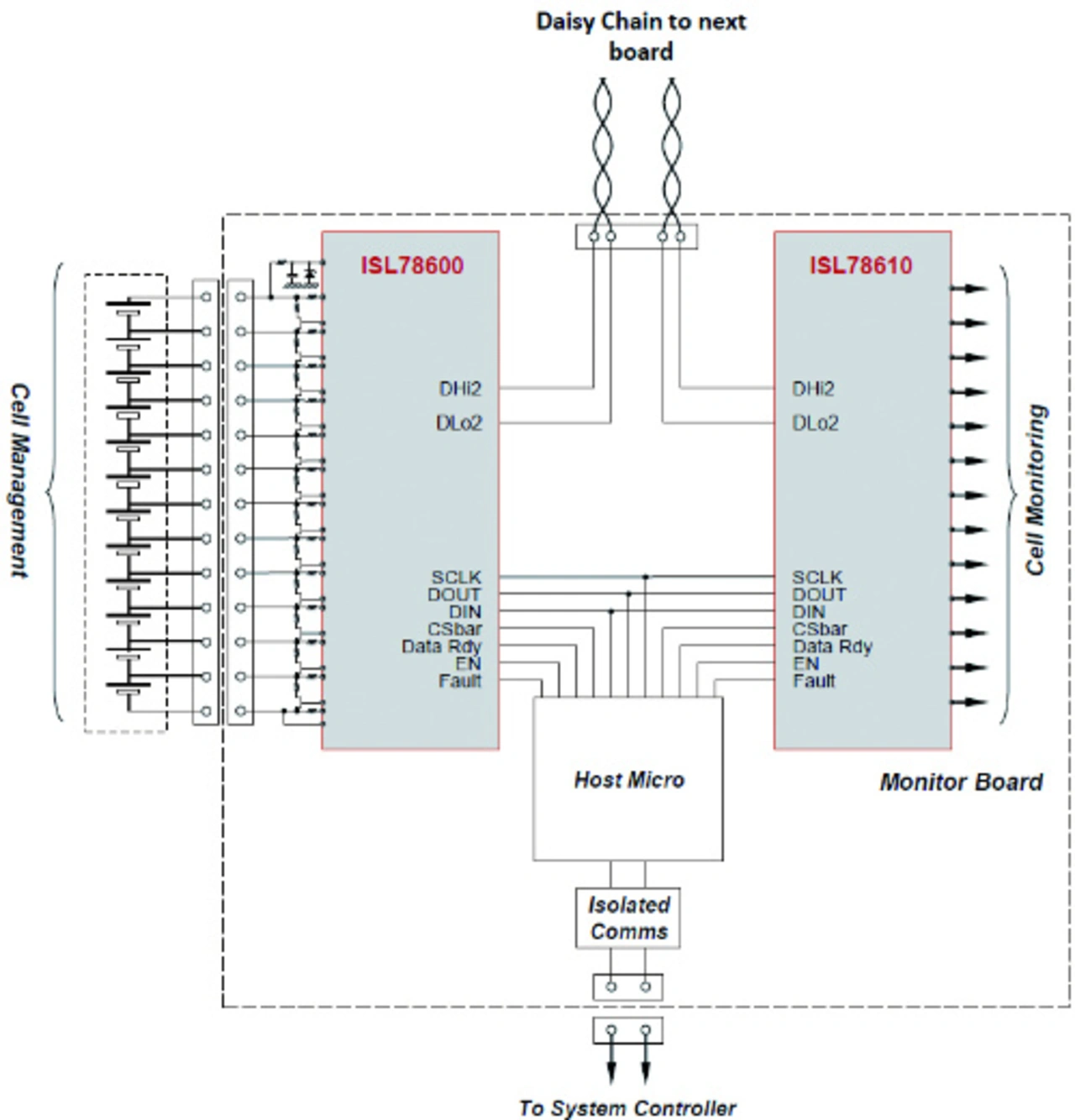 Die in den 12-Kanal-MCB-ICs ISL78600 und ISL78610 eingesetzte Daisy-Chain-Kommunikation zeichnet sich laut seiner Aussage durch eine sehr gute Transienten-Immunität und eine branchenweit führende EMV-/EMI- und Hot-Plug-Festigkeit aus, »die von mehreren Kunden unabhängig voneinander bestätigt wurde«, so Lyne weiter. Bis zu 14 Bausteine können kaskadiert werden. Außerdem ist die Genauigkeit und Langzeit-Drift stabil über den Temperatur- und Spannungsbereich. Wobei Lyne noch darauf verweist, dass die Leistungsparameter nicht auf Bausteinebene, sondern auf der Leiterplatte gemessen und charakterisiert werden, wenn sie das Werk verlassen. Und dank des voll differenziellen AFE ist auch die Messung negativer Eingangsspannungen möglich, ohne die Messung benachbarter Zellen zu beeinträchtigen, was in Systemen von Vorteil ist, in denen eine „Bus Bar“-Verbindung erforderlich ist.