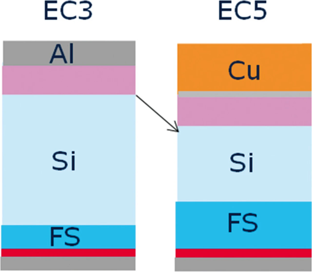 Für die bestmögliche Leistungssteigerung bei der Entwicklung neuer Power-Module bedarf es neben dem IGBT auch der Entwicklung einer Leistungsdiode, die sehr eng mit dem IGBT abgestimmt ist. In Abbildung 4 ist die schematische Darstellung des Querschnitts der neuen Diode der 5. Generation dargestellt. Auch bei der 1700-V-Diode (EC5) gelang es im Vergleich zur vorherigen Dioden-Generation, die Siliziumschicht zu reduzieren. Diese Anpassung ist, wie schon beim IGBT, auch bei der Diode die Grundlage für geringere statische und dynamische Verluste. Die daraus resultierenden Verbesserungen ermöglichen in Kombination mit der um 25 K erweiterten Sperrschichttemperatur eine um 30 Prozent höhere Stromdichte.