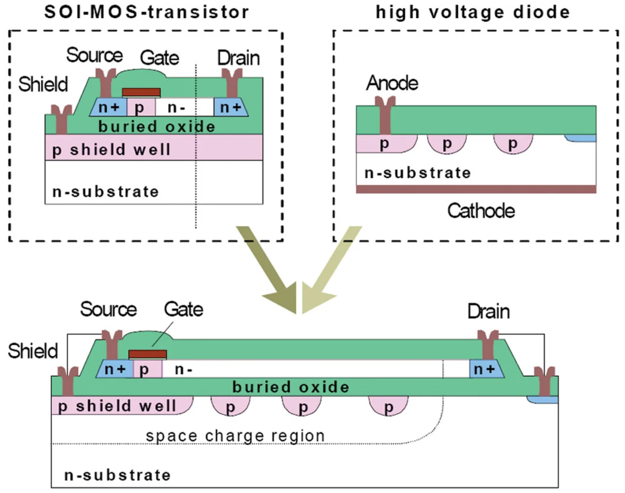 Es ist wohlbekannt, dass SOI-Bauelemente in Dünnfilm- Silizium eine bessere Temperaturstabilität, kleinere Leckströme und keinen Latchup-Effekt aufweisen. Um eine isolierte Signalübertragung in einem IC zu integrieren, sind Optokoppler oder Hochvolt-Levelshifter- Schaltungen üblich. Beide Lösungen weisen aber wesentliche Nachteile auf: Beispielsweise verschlechtert sich die Transfercharakteristik von Optokopplern mit der Zeit, Levelshifter reagieren empfindlich auf EMI-Einstreuung. Deshalb sind mehrere neue Lösungen in der Entwicklung. Mögliche technische Lösungen schließen auch die Ausnutzung des Piezoeffektes, dielektrische Übertragung über kapazitive Koppler oder magnetische Übertragung mit primärer und sekundärer Spule ein. Die magnetische Übertragung ist insofern günstig, da sich hier die Vorteile eines Pulstransformators mit den Vorteilen der IC-Produktionstechnik kombinieren lassen.