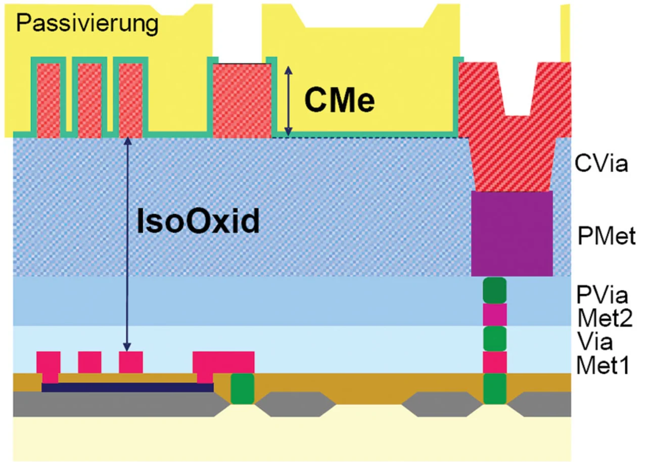 Bei SOI-Bauelementen bestimmt hauptsächlich das verwendete Substratmaterial mit seinen individuellen Eigenschaften den Preis. Viele übliche SOI-Wafer weisen eine »vergrabene« Oxidschicht mit nur wenigen hundert Nanometern Dicke auf und darauf einen meist noch dünneren Siliziumfilm. Hergestellt werden diese Wafer mittels SIMOX-Prozess oder mit Wafer-Bonding- Verfahren. Anstatt der typischen p- oder n-Wannen für CMOS-Transistoren, werden die Bauelemente innerhalb dieses dünnen Siliziumfilms in lateral und vertikal isolierten Inseln platziert (Bild 6).