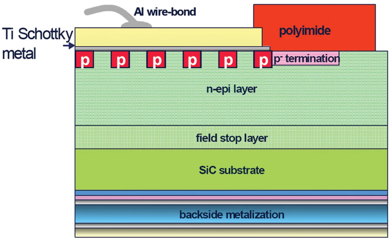 Durch diese positive Rückkopplung steigt die Verlustleistung an und zerstört das Bauelement schnell, wenn eine kritische Überstromgrenze überschritten wird. Hierfür hat man allerdings eine Lösung gefunden, und zwar mittels des Konzeptes der »Merged pn-Schottky Junction« (Bild 5). Bei normalem Strom ist nur der SchottkyÜbergang der Diode aktiv. Bei fünf bis sechs Mal höherem Strom als dem Nennstrom beginnt aber auch der pn-Teil der Diode Ladungsträger zu injizieren, was den Widerstand des Bauelements erheblich reduziert und somit den Selbstheizungs- und Zerstörungsmechanismus beseitigt. Tatsächlich lässt sich mit diesem neuen Konzept der zulässige Überstrom um den Faktor zwei anheben. Diese Technologie soll in Kürze auch für 1200-V- und 1700- V-Dioden verfügbar sein.