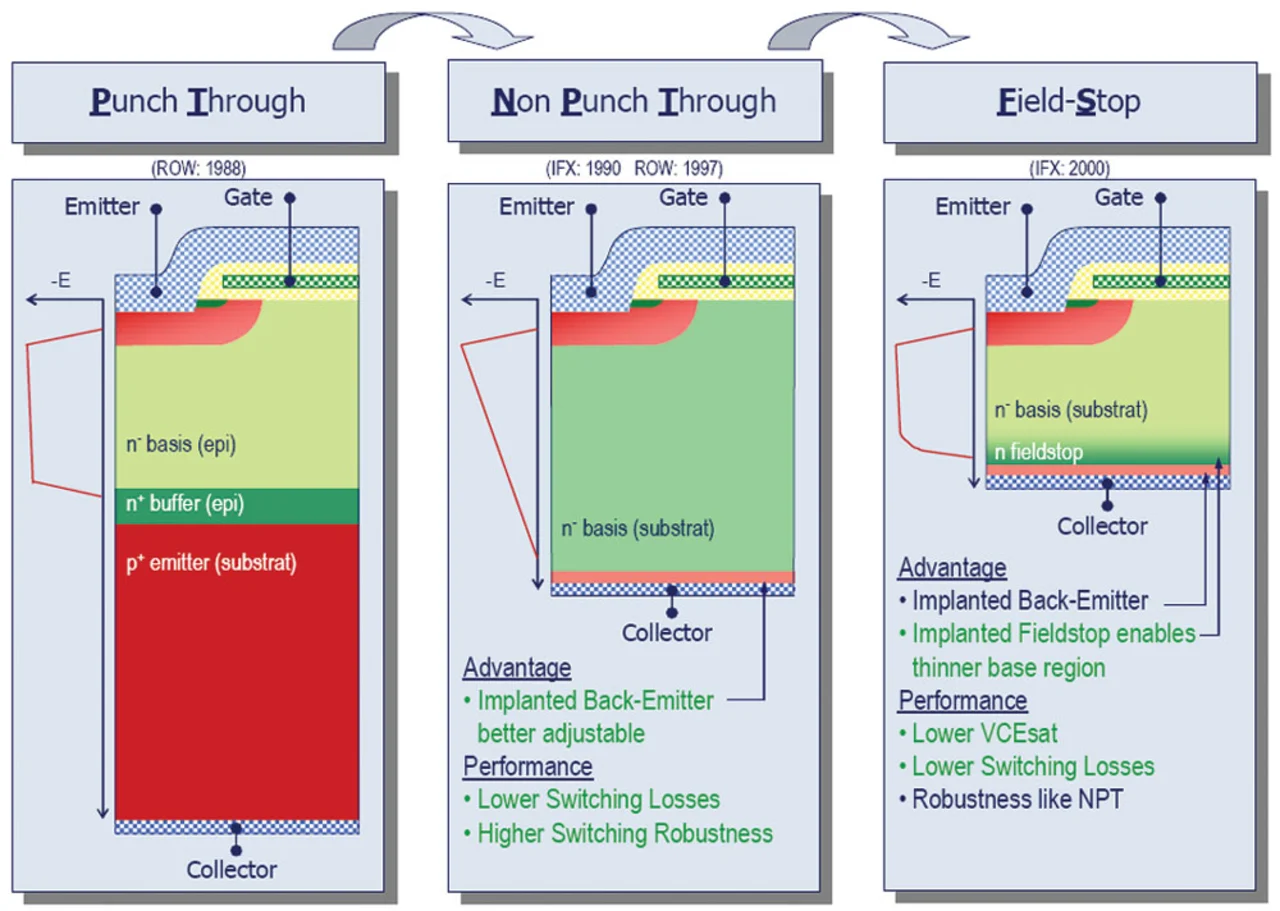 Was wird als nächstes kommen? Ist der Siliziumschalter für kleine, mittlere und hohe Leistungen für Inverter und Traktionsanwendungen jetzt an seinem evolutionären Ende? Die definitive Antwort ist Nein! Auf der einen Seite ist das Ausrollen der modernen Chipprozesse auf Höchstvolt-Traktions-IGBTs (3,3 kV bis 6,5 kV) noch immer am Laufen, andererseits sind für die niedrigeren Spannungen (600 V, 1200 V, 1700 V) die nächsten IGBT-Generationen gerade in der heißen Entwicklungsphase. So könnten im niedrigen Leistungsbereich solch vorteilhafte Eigenschaften wie eine Rückwärtsleitfähigkeit durch eine integrierte Freilaufdiode Realität werden.