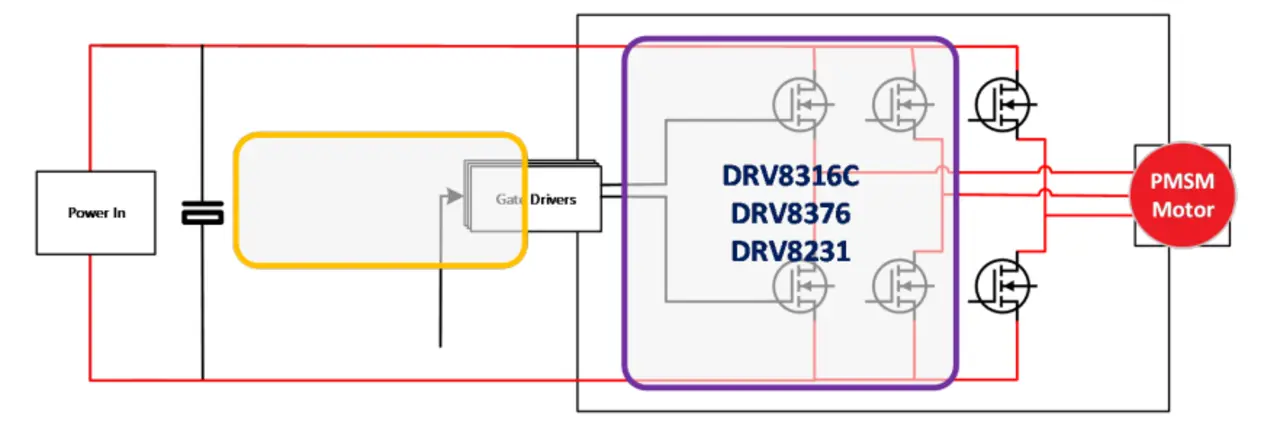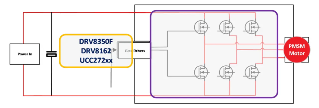 Den Motoren in dieser Kategorie wird die höchste Leistung abverlangt, und die Leistungsdichte ist hier entscheidend für die Funktionalität. Ein hoher Wirkungsgrad und kleine Abmessungen sind die vorrangigen Kriterien, und üblicherweise werden FETs parallelgeschaltet. Hieraus resultieren höhere Anforderungen an die Stromtragfähigkeit des Gate-Treibers, damit schnelle Schaltvorgänge möglich sind und sich der Gesamtwirkungsgrad des Systems verbessert.